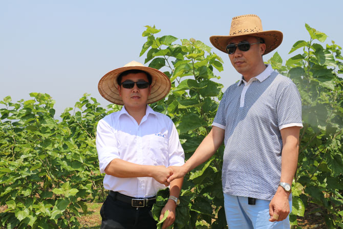 郭總與田經(jīng)理在長(zhǎng)壽茶基地考查