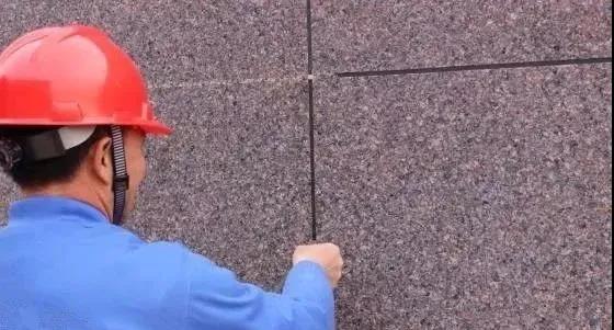 膩子施工完,涂刷抗堿封閉底漆后,可進行分格縫工序。根據(jù)設(shè)計的分格大小,用彈線的方式在墻面上畫分格。